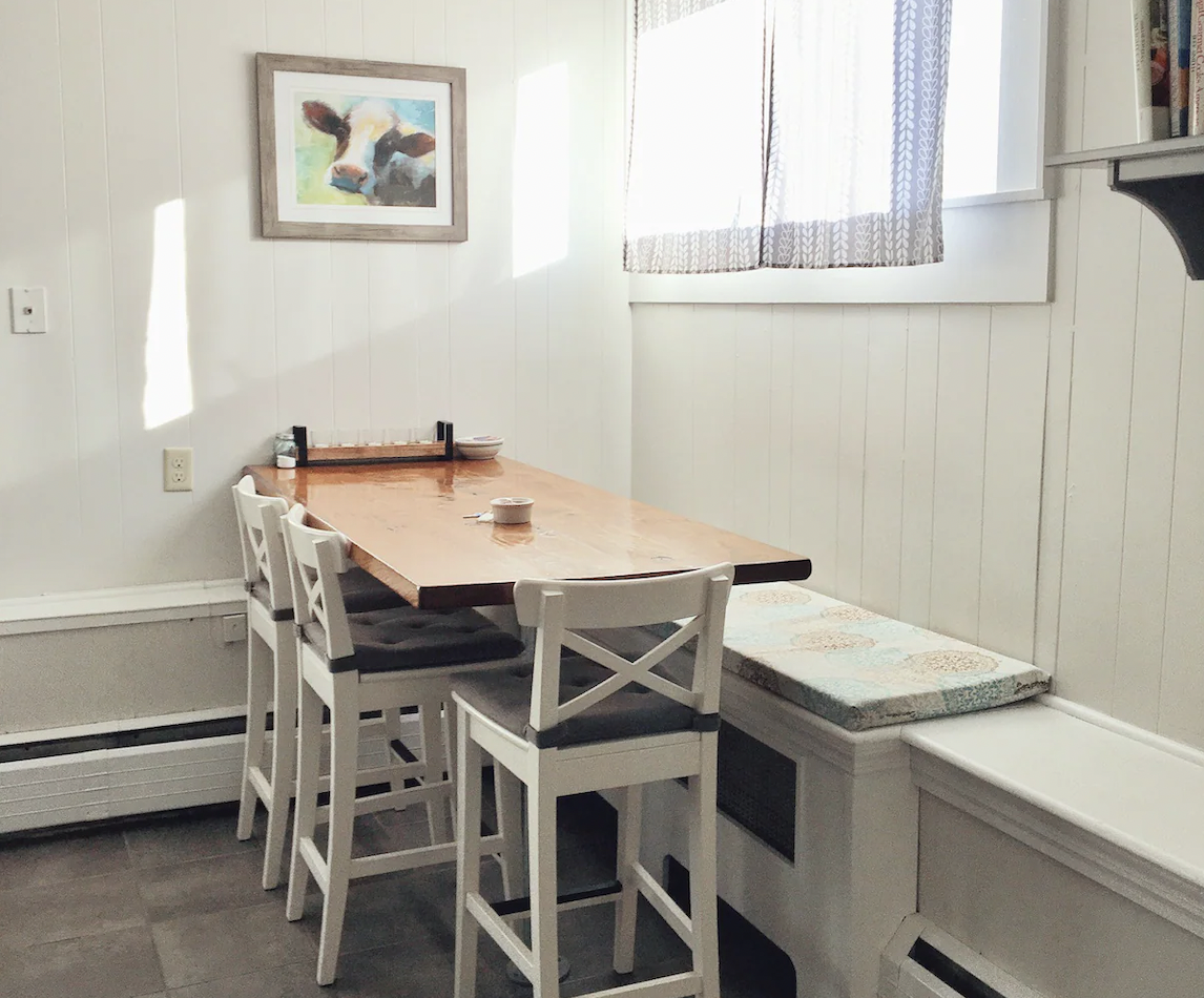 A cozy 2 bedroom apartment in the charming little village of Rochester, Vermont. Located within walking distance to restaurants, an art gallery, gift shop, grocery store, playground, laundry mat and more! Offering free parking, excellent ECFiber internet and a smart TV; work remotely from the dining nook or stream your favorites in the living room. A fully stocked kitchen, comfy bedding, bright & cozy living room invite you to come relax in Rochester! Need one more bedroom? Keep your eye out for our “Quaint Rochester Rental”, which offers this same rental, but with the option for a third bedroom!